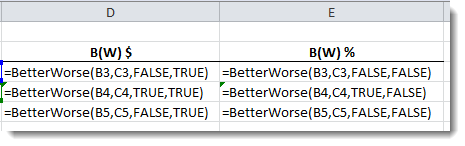 Function BetterWorse(Prior_Period As Double, Current_Period As Double, Expense As Boolean, Return_Dollar As Boolean) As Double